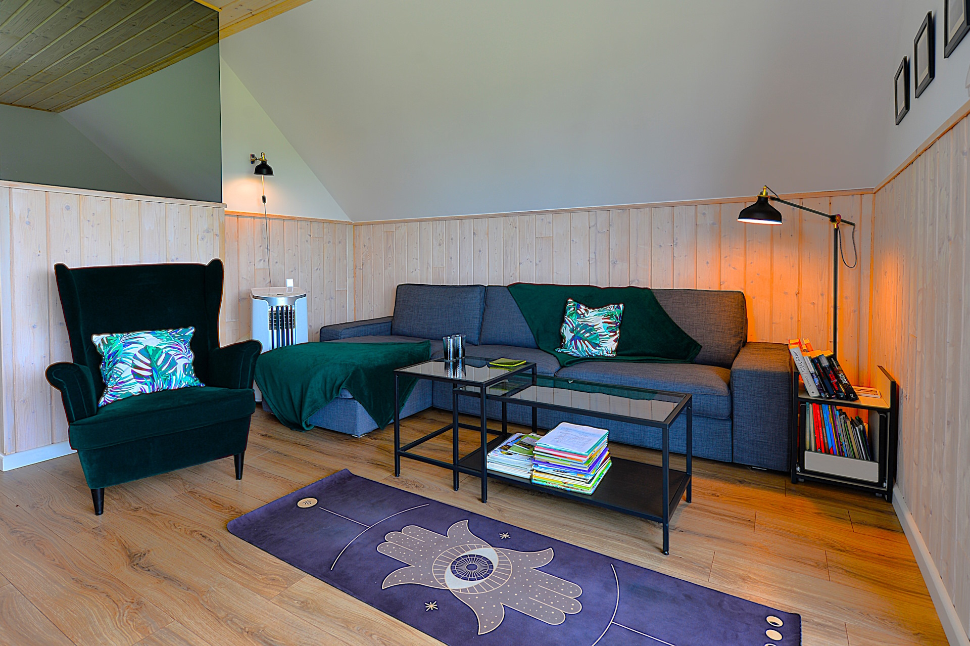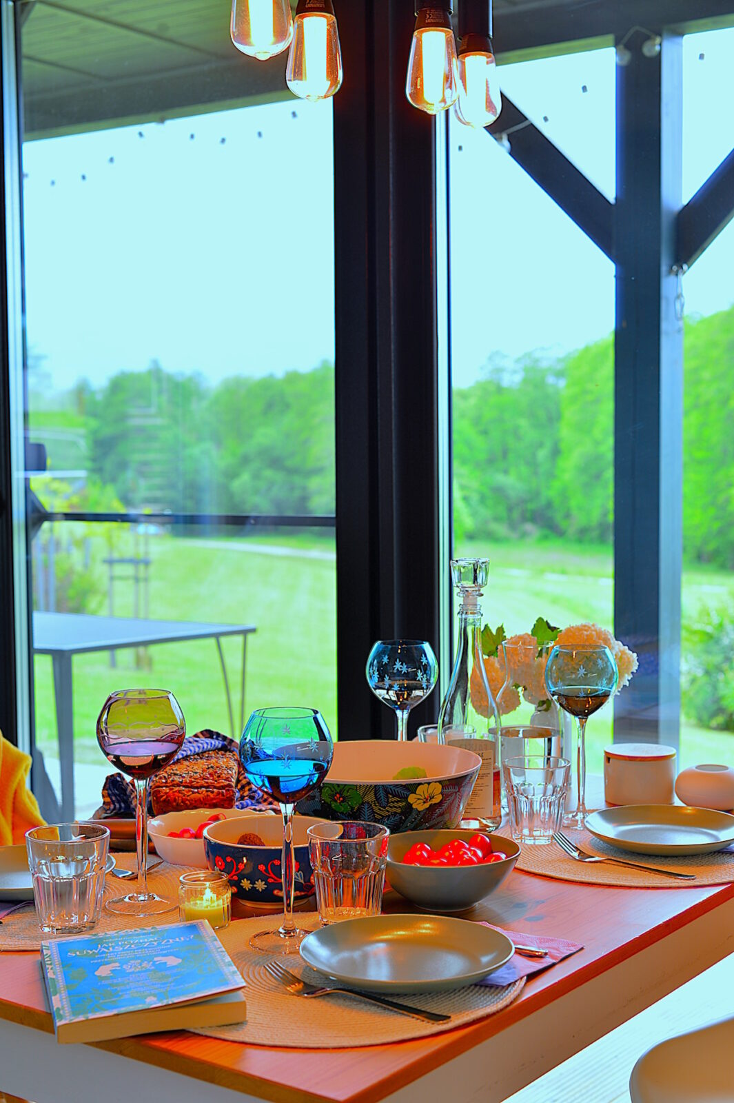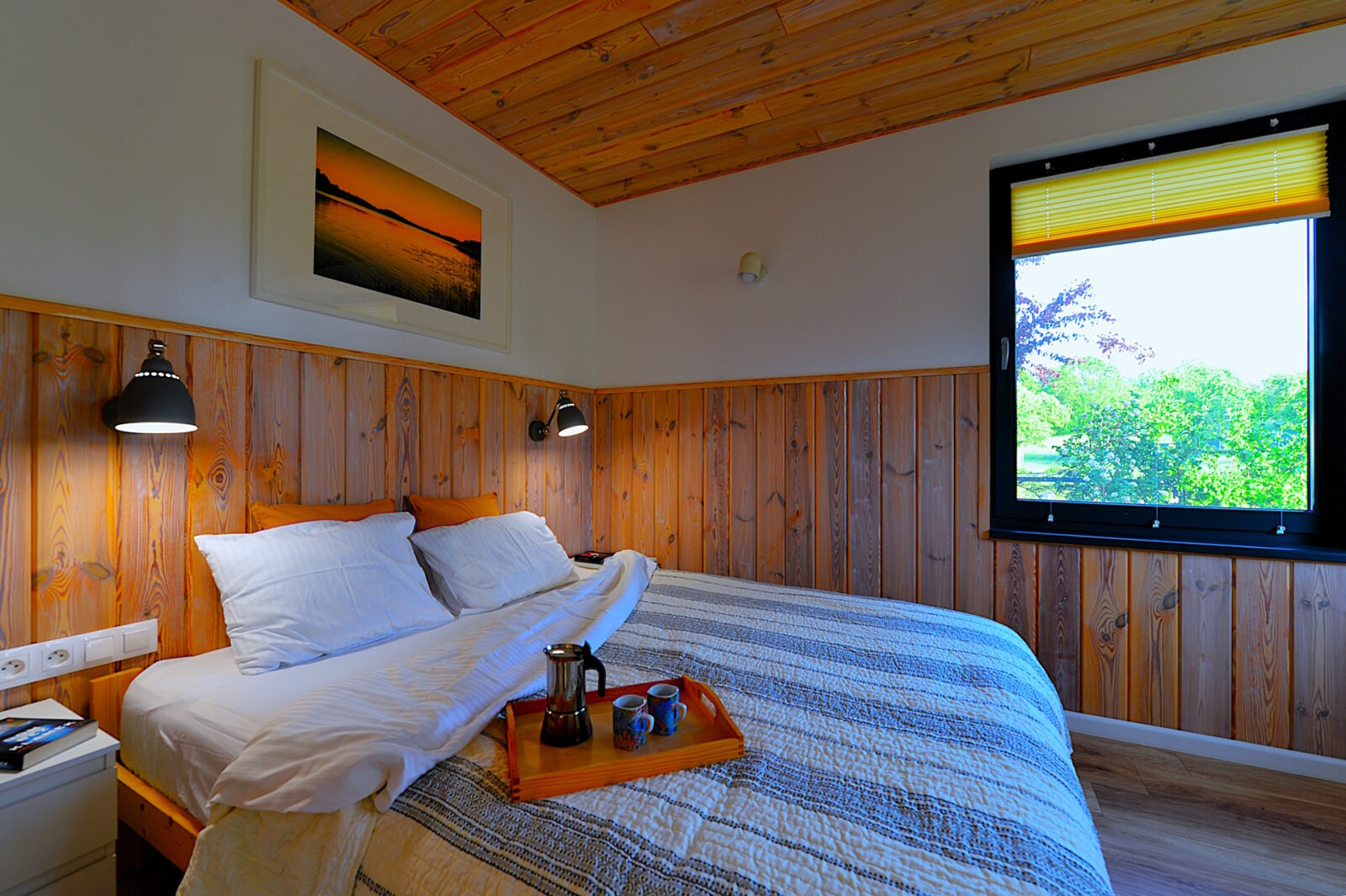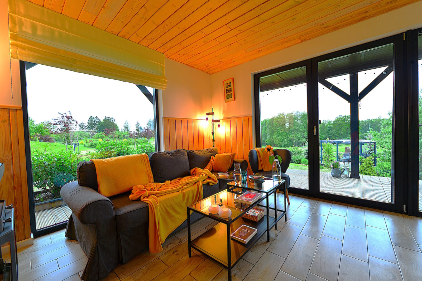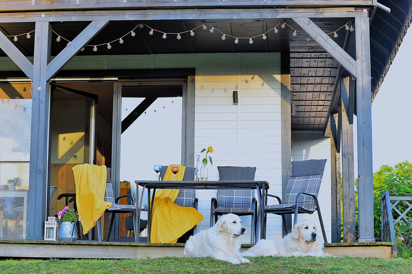 Nasz domek jest drewniany. Staraliśmy się używać do jego budowy tylko naturalnych elementów, takich jak drewno, kamień, szkło. Apartamenty są urządzone w stylu skandynawskim, z prostotą, ale ze smakiem. Obydwa apartamenty mają tarasy z przepięknym widokiem, a zachody słońca u nas są naprawdę magiczne.
