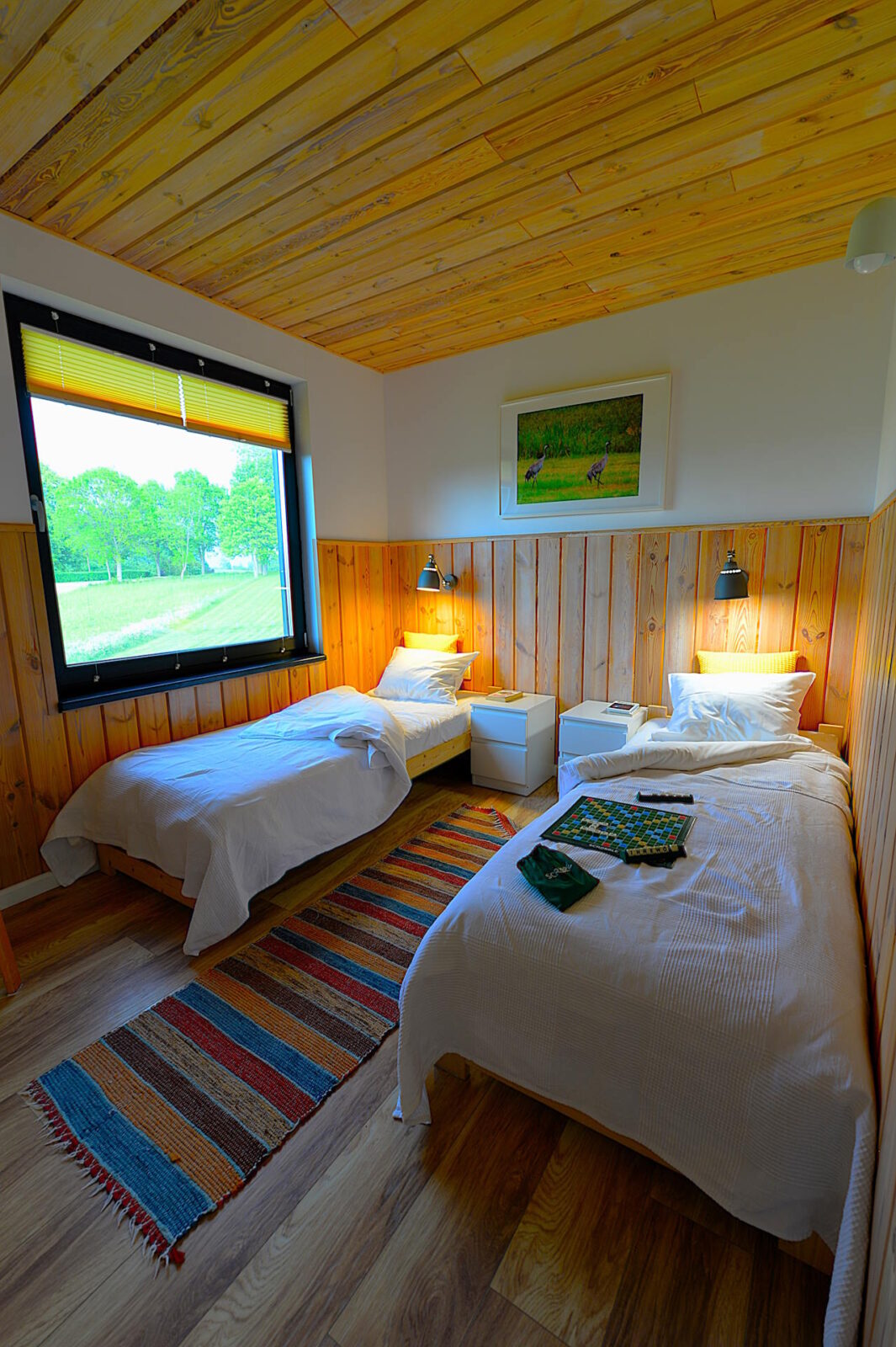 - dwóch sypialni – jedna z łóżkiem małżeńskim, w drugiej dwa jednoosobowe łóżka